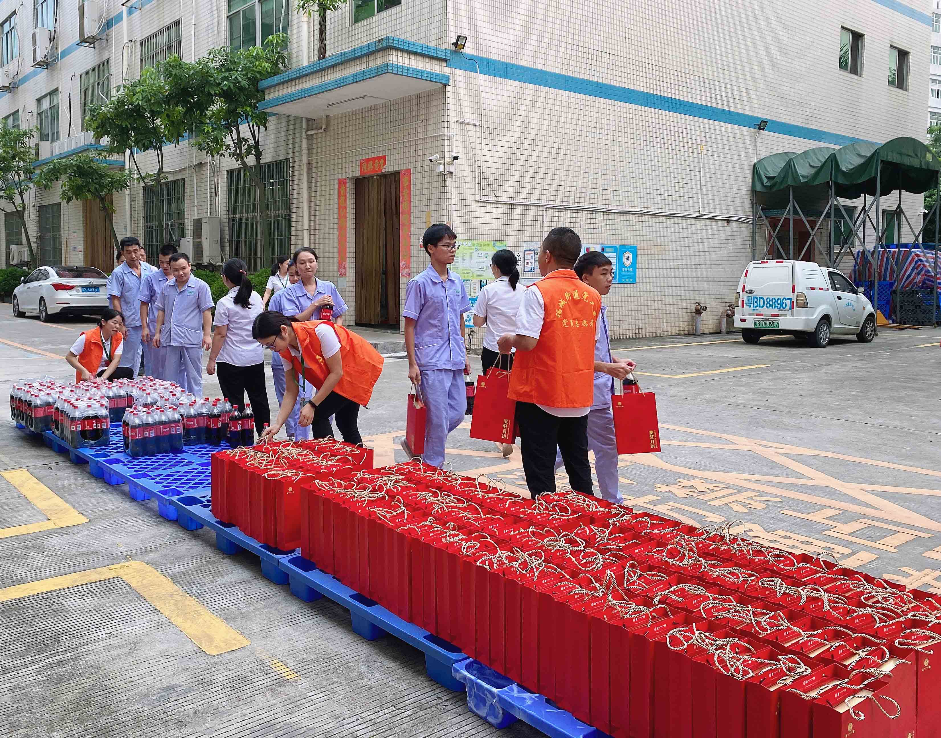 公司行政部門依次給同事們發(fā)放節(jié)日福利~