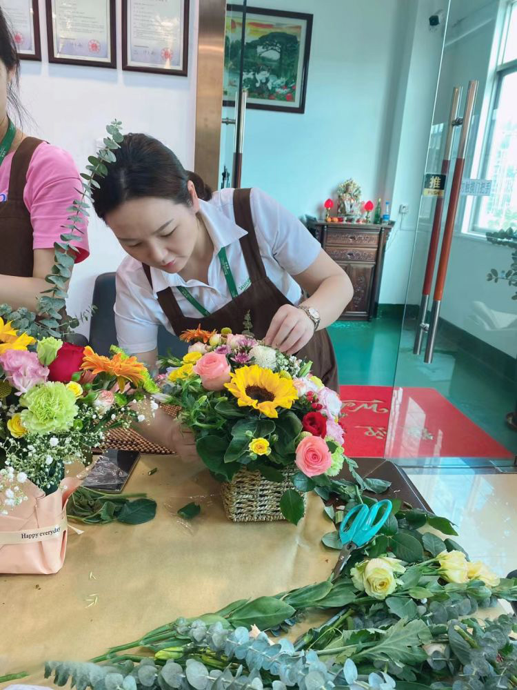 雅香麗化妝用品(深圳)有限公司 邀請專業(yè)插花師為員工講解插花技巧 關愛員工的生活與工作 快樂工作 快樂生活~